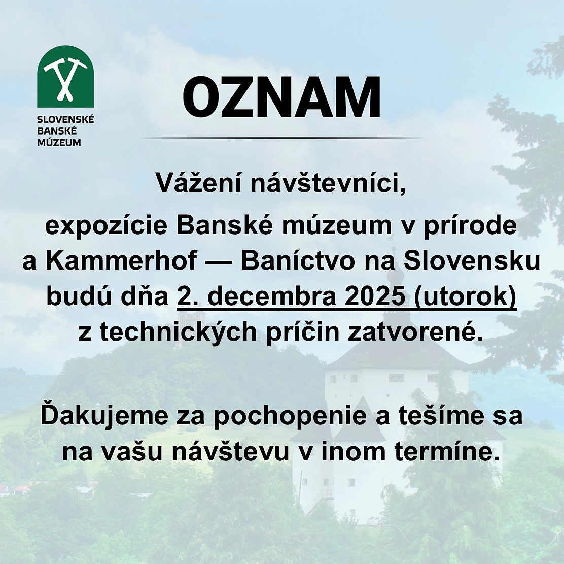 The exhibitions of the Mining Museum in Nature and Kammerhof-Mining in Slovakia will be closed to the public on December 2, 2025.