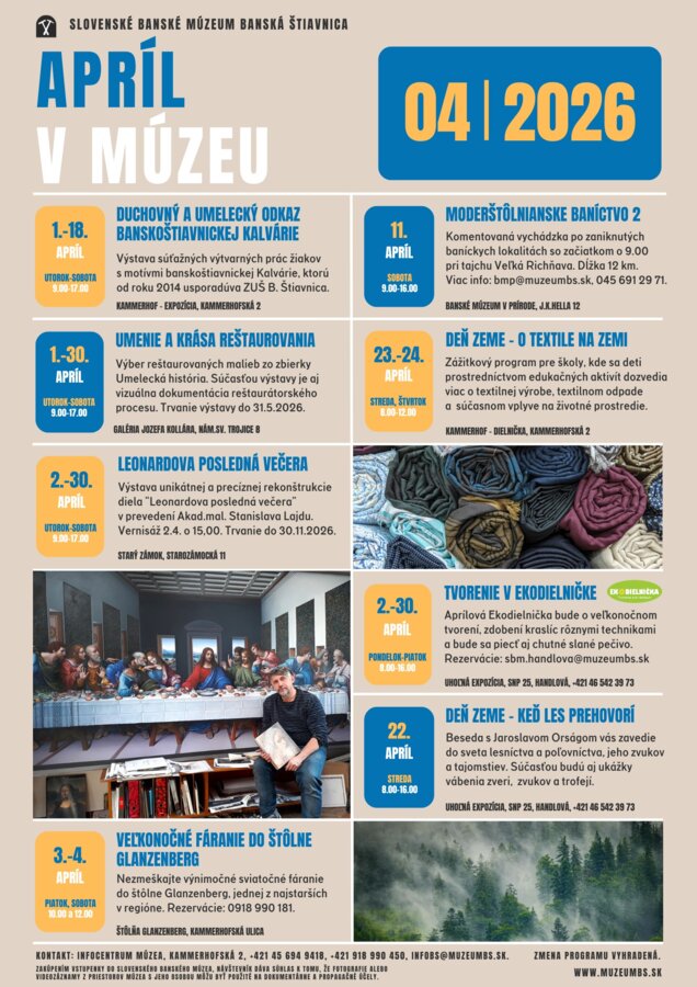 Slovenské banské múzeum otvára v apríli svoje brány s programom, ktorý sľubuje neobyčajné zážitky pre milovníkov histórie, umenia aj aktívneho oddychu. Či už vás láka ticho podzemia, precízna práca reštaurátorov alebo jarné túry po stopách baníctva, v apríli 2026 si v Banskej Štiavnici a Handlovej prídete na svoje.