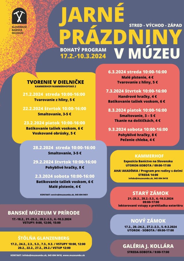 Jarné prázdniny v múzeu 2024 odštartujeme otvorením Banského múzea v prírode po zimnej prestávke. Tešíme sa na vás už v sobotu 17. februára o 9:00 hod.