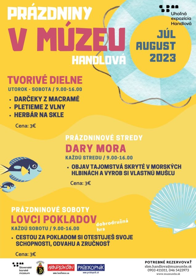 Rezervácie: sbm.handlova@muzeumbs.sk, 0903 411 011 alebo 146 542 39 73