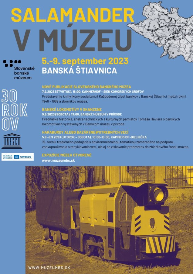 • 13.00 / BANSKÉ LOKOMOTÍVY V SKANZENE – prednáška historika, znalca technických a kultúrnych pamiatok Tomáša Haviara o banských lokomotívach vystavených v Banskom múzeu v prírode